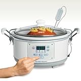 5 quart Oval slow cooker with flat panel digital controls & temperature probe for large cuts of meat- Never over cook or under cook meat with this precise temperature probe . Slow cooks three ways - manually or pre-programmed by time or temperature with the included meat probe. Includes clip tight glass lid feature to reduce spills when travelling . Automatically shifts to warm to prevent overcooking and then update cheapest prices immediately. Limited time Only!